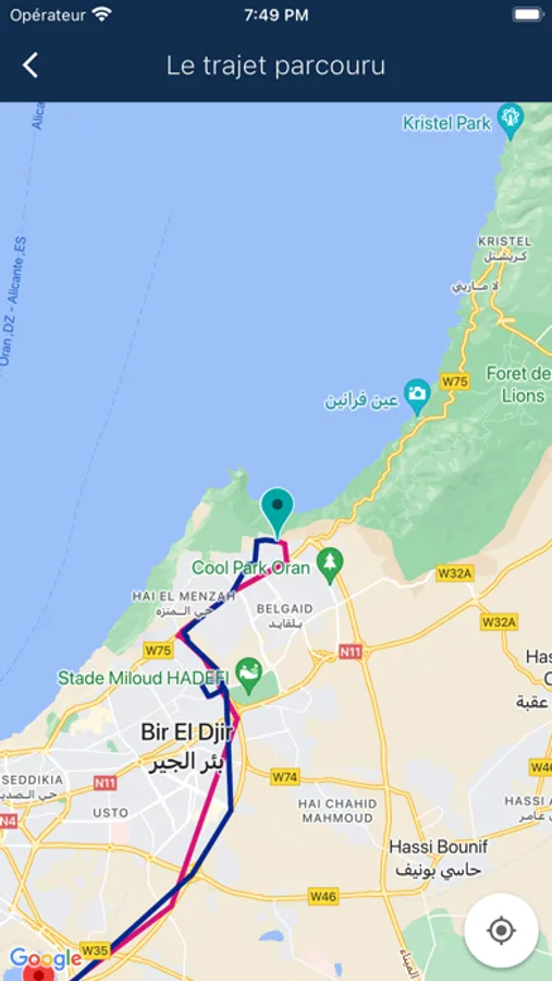 -Les trajets sont retracés à l’aide de la cartographie Google Map. Il est possible de connaitre les points et les temps d’arrêt avec en plus la position d'arrêt.