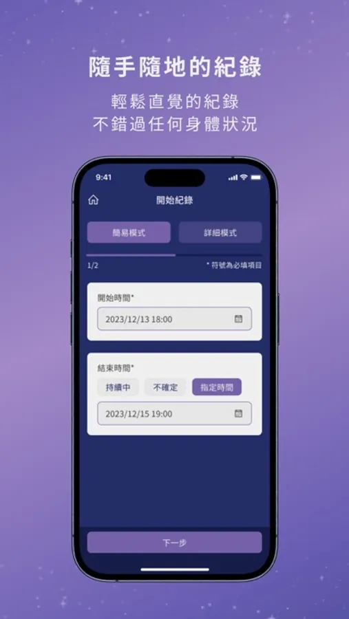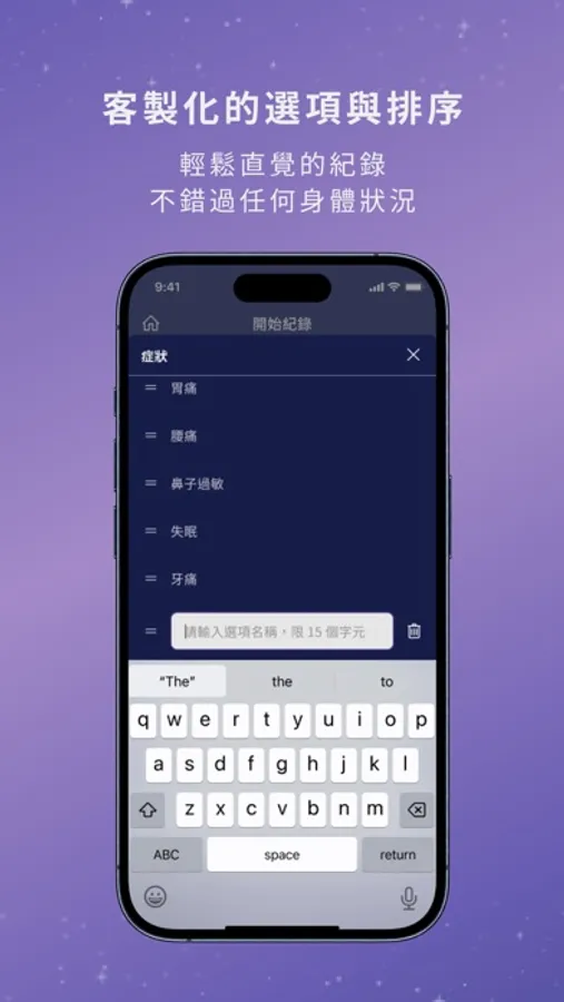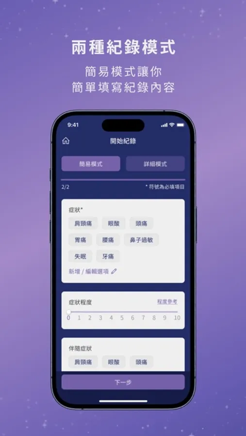 1. 隨手隨記:輕鬆、直覺地讓你隨時隨地紀錄每個不舒服的瞬間,不錯過任何重要的身體狀況。