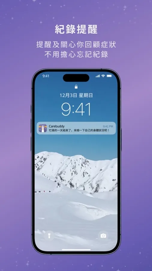 4. 紀錄提醒:提醒及關心你回顧一天中的症狀,不用擔心忘記紀錄。