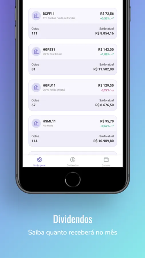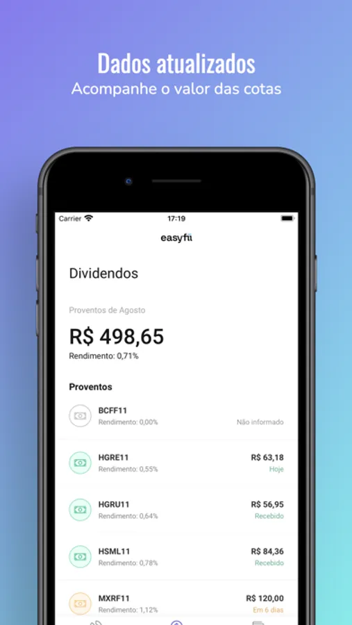 - Informações sobre os dividendos que serão pagos no mês atual.