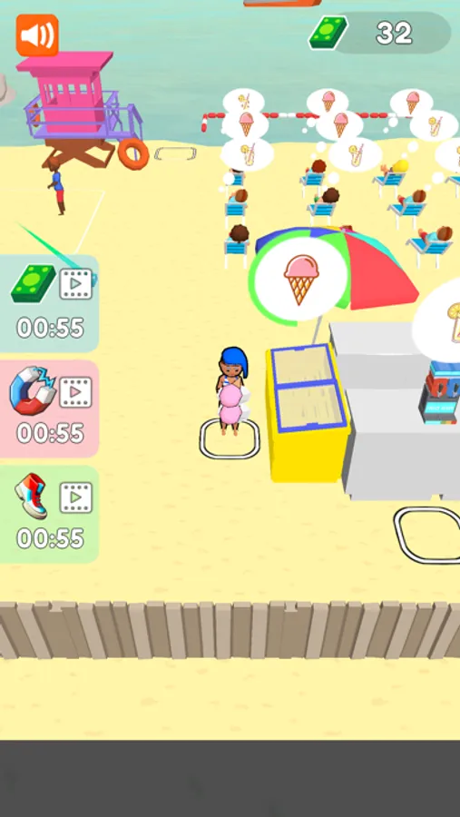 "Create Your Beach" offers a dynamic and engaging gameplay experience that lets you fulfill the dream of owning and managing your very own beach paradise. Utilize your startup capital strategically to invest in lounge chairs, the cornerstone of relaxation and comfort for your visitors. Efficiently serve guests, prepare and serve refreshing cocktails, and ensure a smooth and enjoyable experience for all.