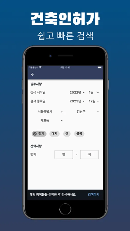 이제 여러분의 스마트폰에서, 단지 클릭 몇번만으로 쉽고 편하게 건축인허가 현황을 열람해보세요. 지금 바로 다운로드하시면 됩니다!