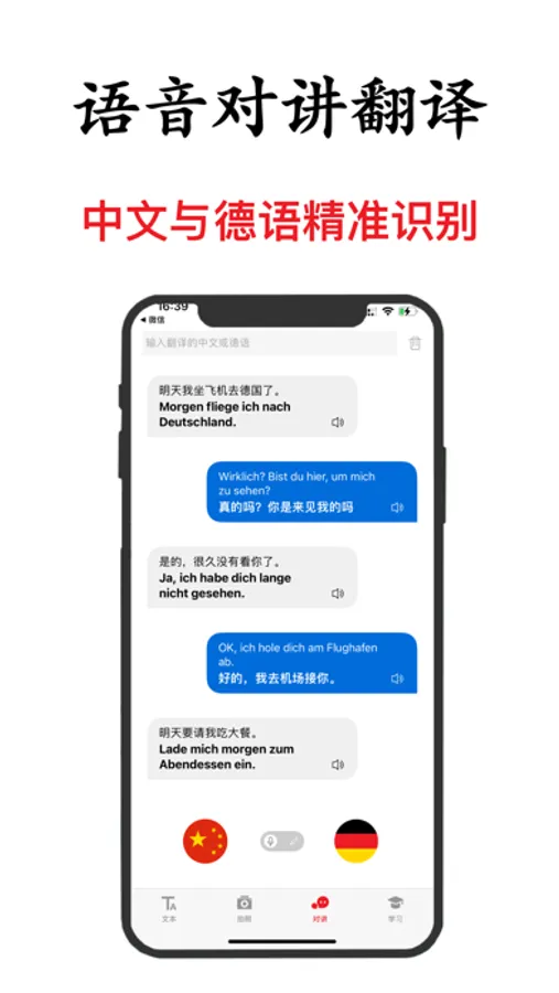 特别受去德国旅游的用户喜欢,能准确把语音转化为文本内容,并快速翻译成中文或德文。