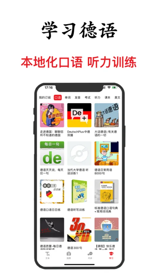 提供中文德语的常用词句,以及词汇发音,让用户更快掌握德语种。