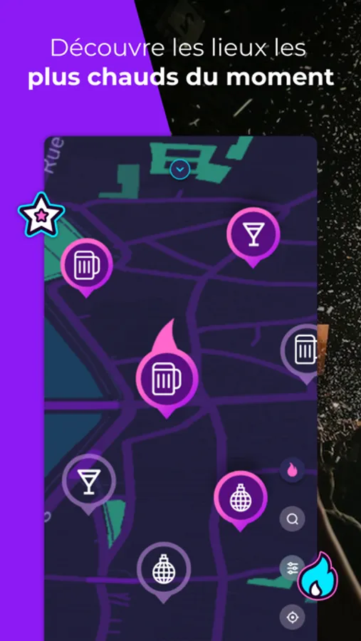 Explore notre map interactive et repère instantanément les endroits les plus chauds de ta ville grâce aux flammes partagées par les utilisateurs déjà sur place !