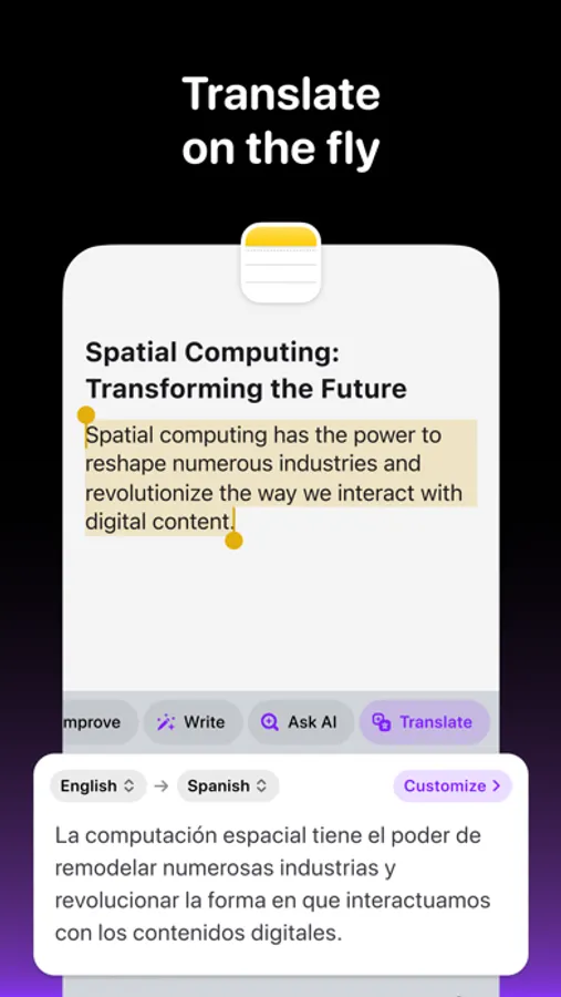 • Seamlessly translate your text from English into X different languages through your keyboard.