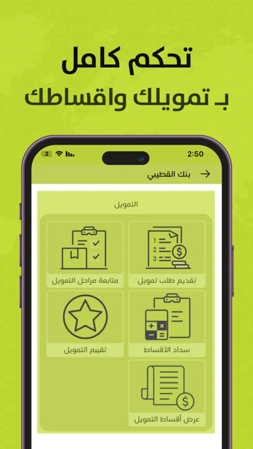 بالأضافة الى مراحل التمويل من تقديم طلب ،متابعة المراحل ،سداد اقساط وتقيم للتمويلات التي مازالت قيد التطوير والعديد من الخدمات الاخرى