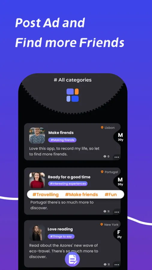 1. Personal Ads: FindX offers a unique Personal Ads feature, providing users with the opportunity to post ads and connect with new people or even engage in buying and selling various items. Whether you're searching for a hiking partner, a concert buddy, or looking to buy or sell something, you can create an ad and share your preferences and interests. This feature opens up endless possibilities for expanding your social network and finding activities or items that align with your interests.