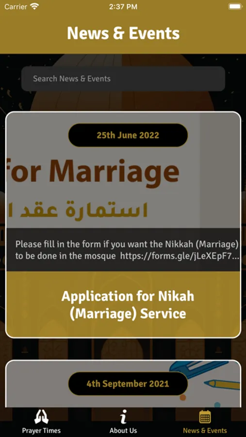 The mosque app is for mosques to display their specific prayer times. As almost all mosques have different prayer times, especially congregation prayer times, this will ensure that the mosque can show the correct salah (prayer) time to the mosque members.