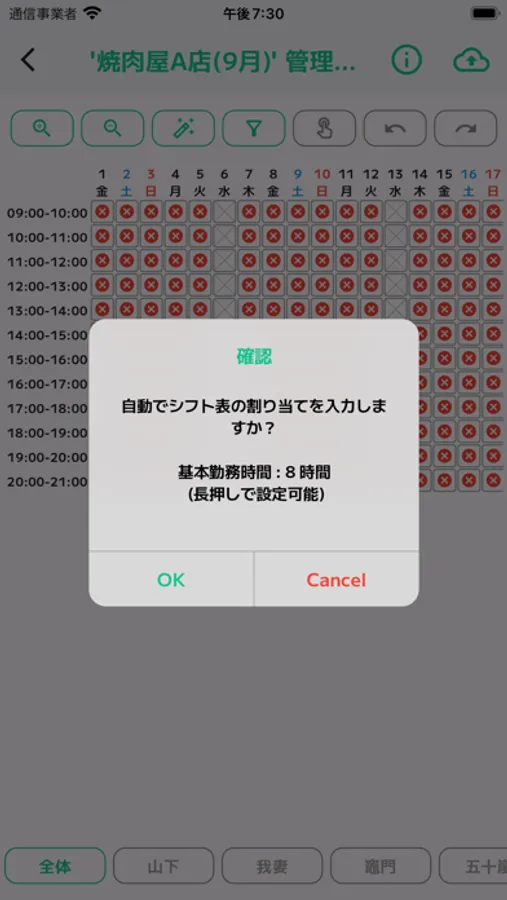 このアプリはシフト表の作成・共有をスマホ1つで行うアプリです。(完全無料)
