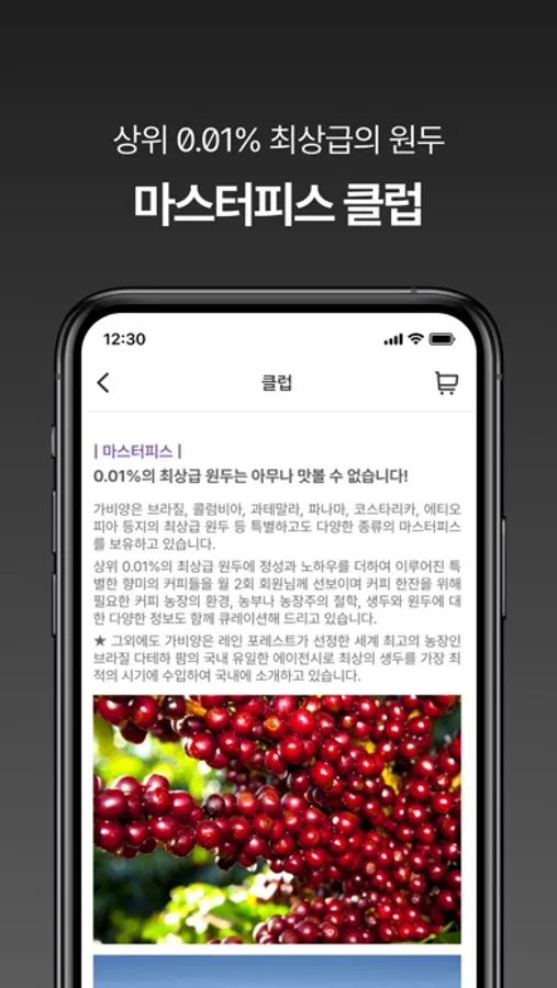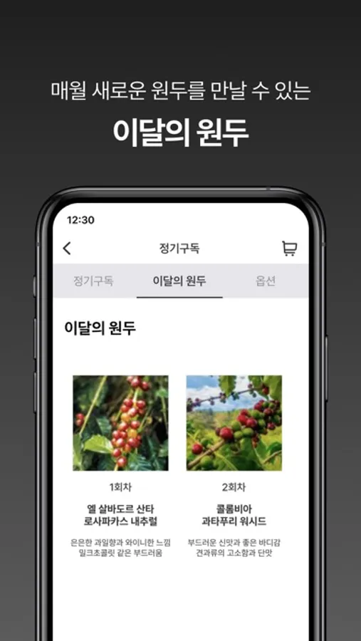 - 매월 엄선된 원두 정기구독 & 0.01%의 최상급 원두인 전세계 마스터피스 상품 정기구독