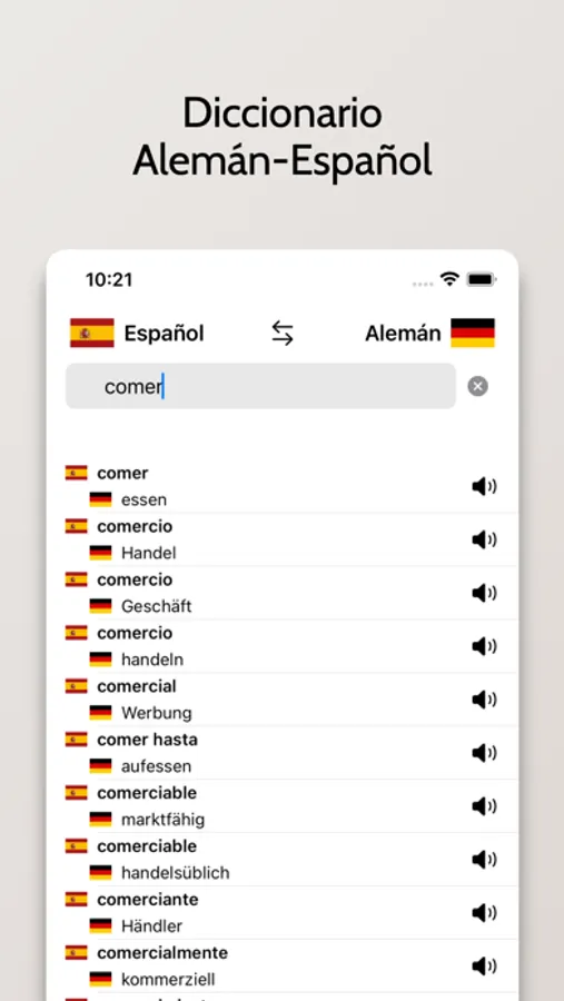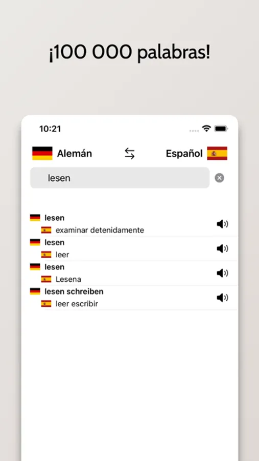 - Posibilidad de buscar a partir de palabras en Español o Alemán
