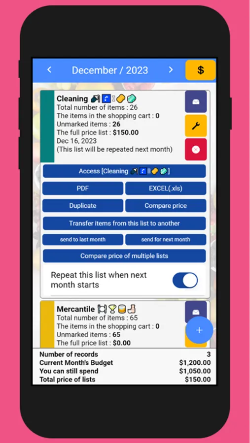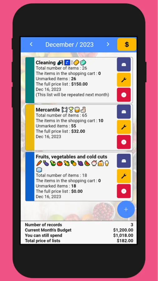 This app is a monthly salary manager focusing on shopping lists (food niche).