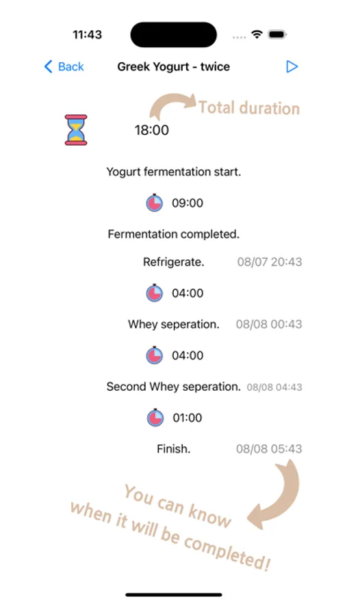 It will notify you when the yogurt fermentation is complete or when it's time to strain the whey after refrigeration.