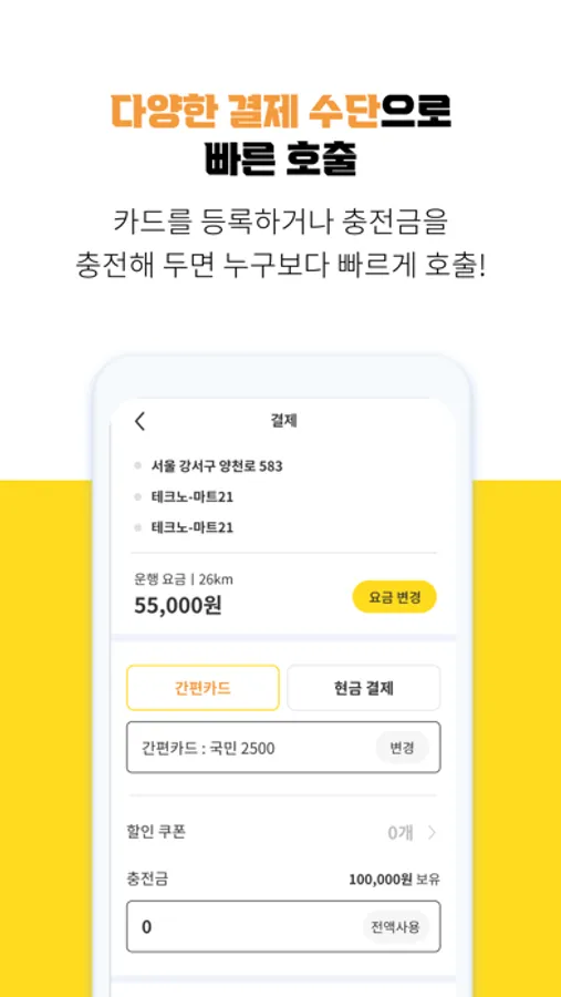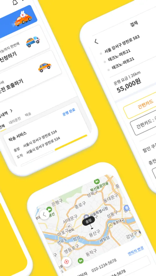 3) 요금 산정: 최적의 로직으로 빠르게 배차될 수 있는 가장 합리적인 가격을 제시합니다. 물론 요금은 스스로 조정할 수도 있습니다.