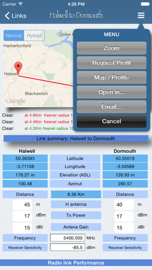 The RF Haversine (RF Propagation and profile Analysis Tool) bring our experience gained on Radio Propagation to the mobile market.