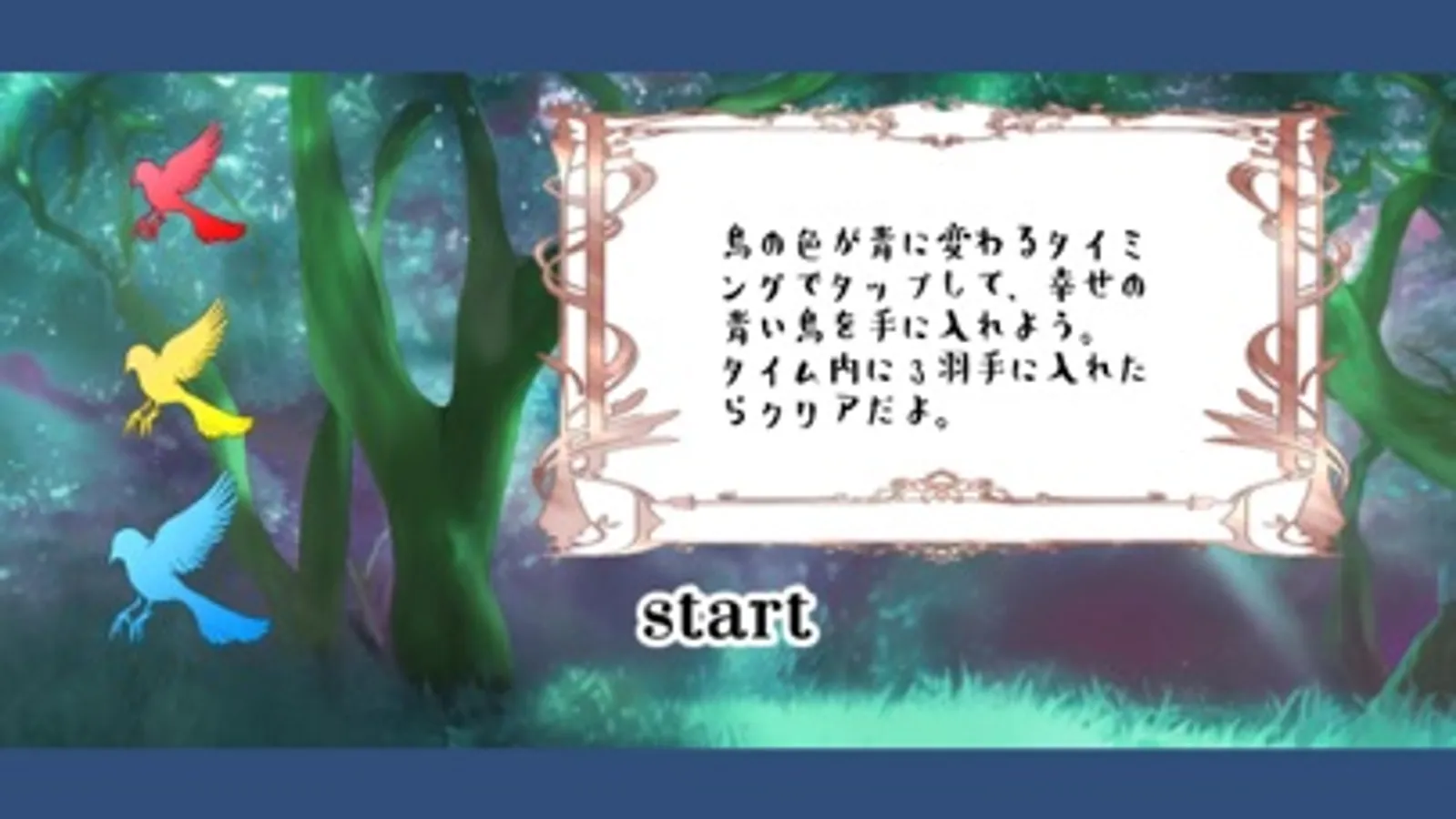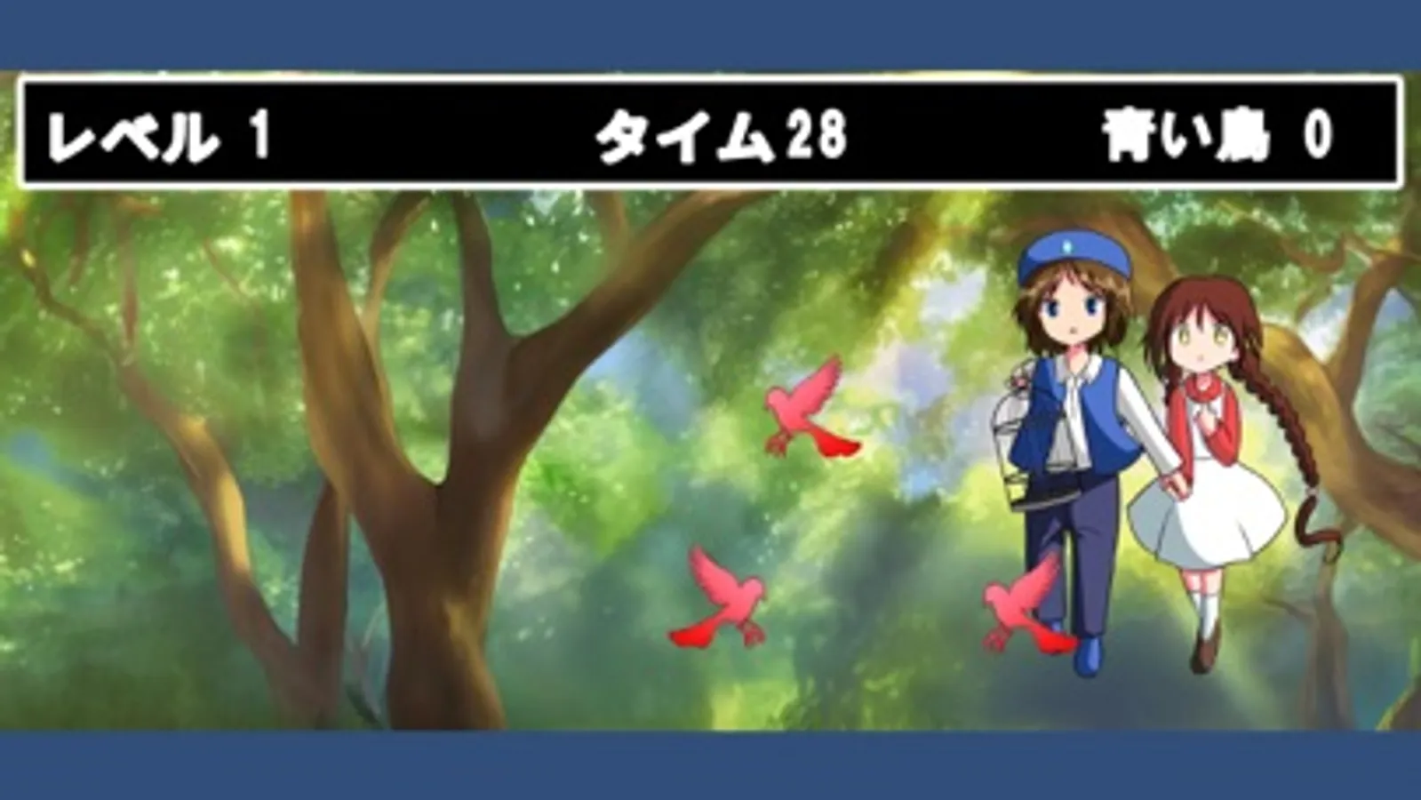 タイム内に幸せの青い鳥を3羽手に入れたらクリアだよ!
