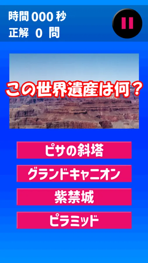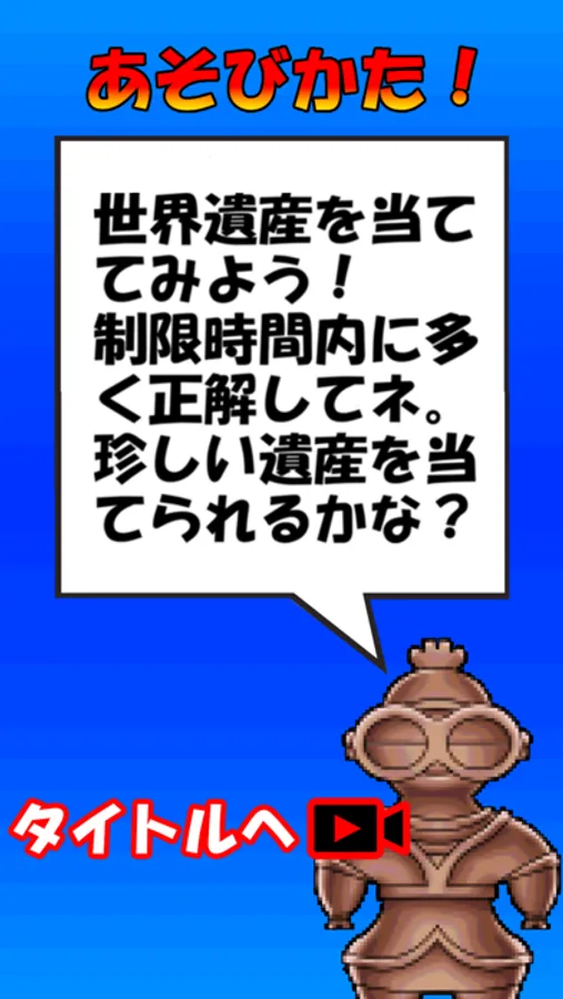 制限時間内に、より多くの世界遺産の名前を当てる簡単ゲーム!