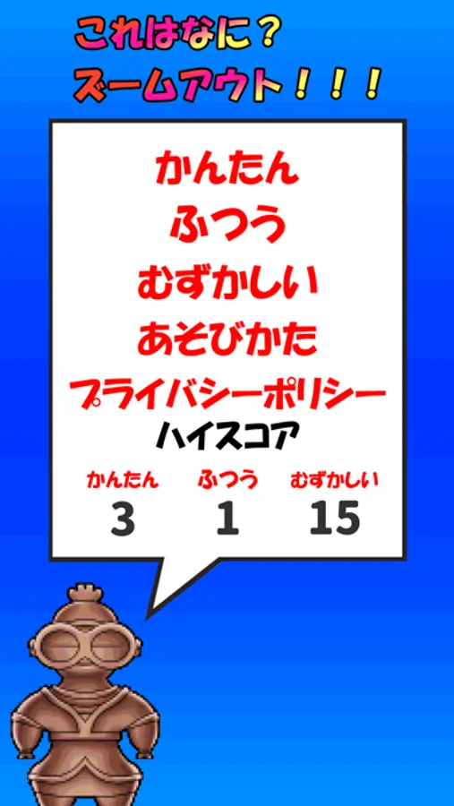 ゲームの難易度は「かんたん・ふつう・むずかしい」から選べるよ!