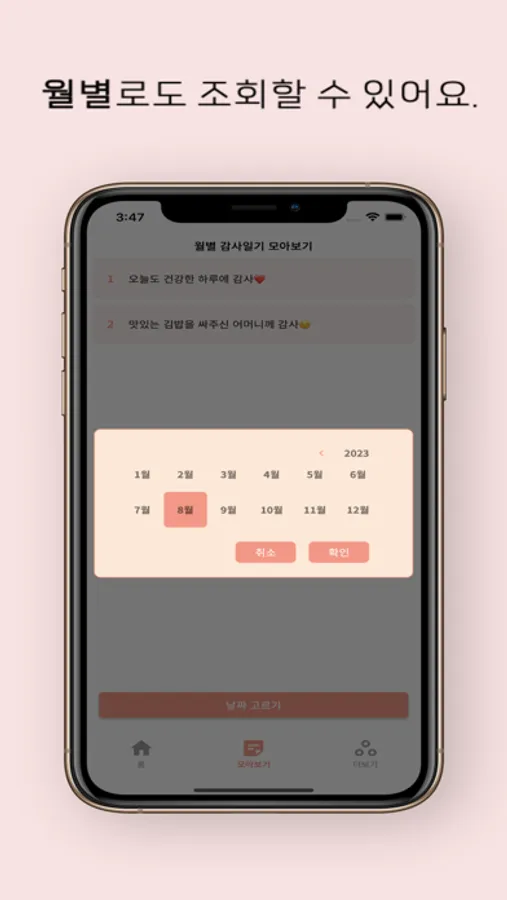 - 내가 작성한 감사일기를 월별로 모아볼 수 있어요.