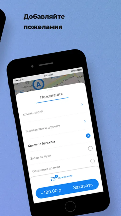 Добавьте к заказу дополнительные пожелания. Например, если с собой несколько сумок или чемодан — выберите "клиент с багажом".