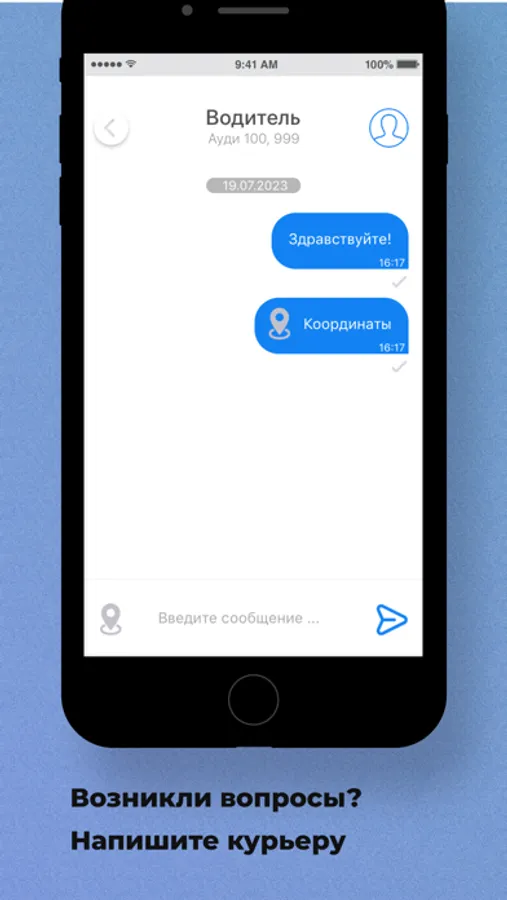 Спросите в чате приложения, где он находится, или отправьте ваши координаты с помощью одной кнопки.