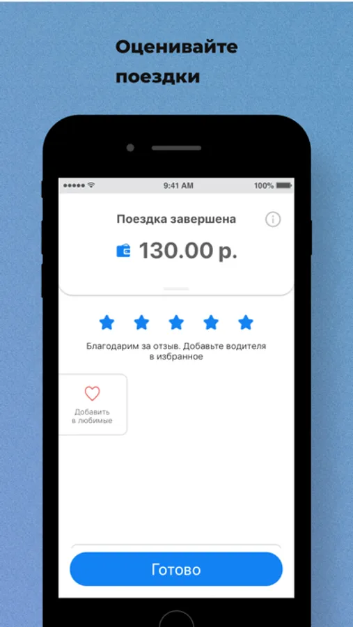 Поставьте оценку водителю, напишите отзыв или выберите реакцию из готовых шаблонов. Добавьте водителя в избранные, если понравилась поездка.