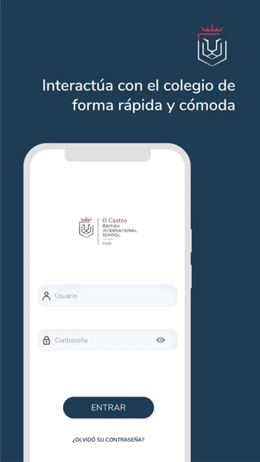 Conéctate y mantente en contacto con O Castro British International School estés donde estés. My O Castro BIS es una potente herramienta de comunicación del centro con las familias, pensada para que puedas seguir en tiempo real la vida escolar de tus hijos. La aplicación ofrece todo lo que necesitas saber sobre el día a día de tus hijos en el colegio: desde consultar las calificaciones o informes, contactar con el profesorado o ver las ausencias de tus hijos y todo lo relacionado con su seguimiento escolar, hasta consultar tus facturas, revisar el menú, las rutas escolares o la normativa y políticas del centro.