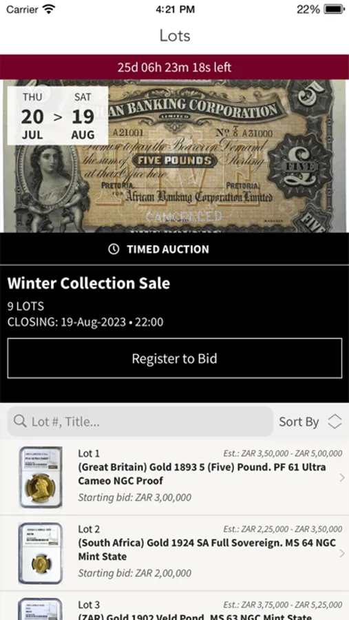 Randcoin Vintage Collector Auctions is your one-stop auction house for Coins, Banknotes and collector items from around the world. We are based in Randburg, Gauteng - located in South Africa. Our offices offer safety and accessibility for any potential bidders that wish to view our catalogue.We are passionate about providing an enjoyable experience from the comfort of your home and with the privacy needed to place your competitive bid for your next collectors item on our auction platform. We strive to showcase the best selection of unique and rare collector items.With the Randcoin Vintage Collector Auctions app, you can preview, watch and bid in our auctions from your mobile / tablet device. Participate in our sales while on-the-go and gain access to our following features: