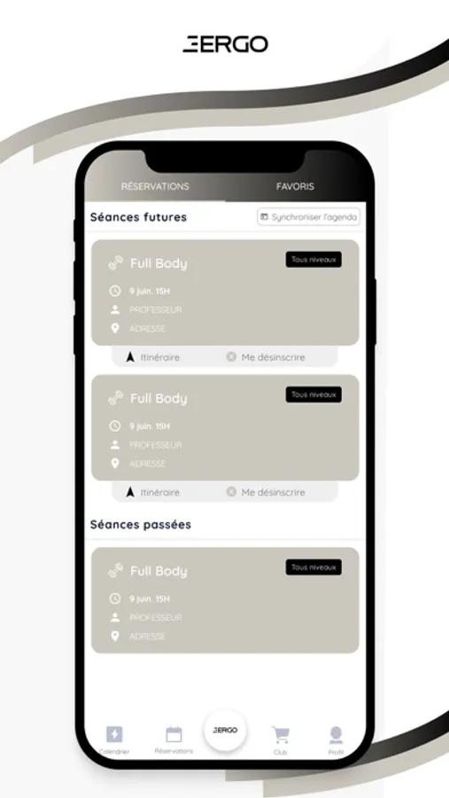 Des cours en groupe de 4 à 8 personnes selon le thème, à réserver directement sur l’appli ERGO COACHING.