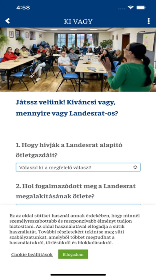 Ha csak egy könnyed játékra vágyik üsse el az időt a Ki vagy? gomb kvízjeivel, melyek kitöltésével a szórakozás mellett még jobban meg is ismerheti a Landesratot.
