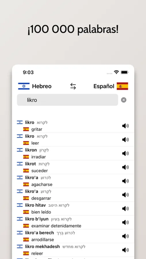 - Pronuncie la palabra en Hebreo en la lista de búsqueda