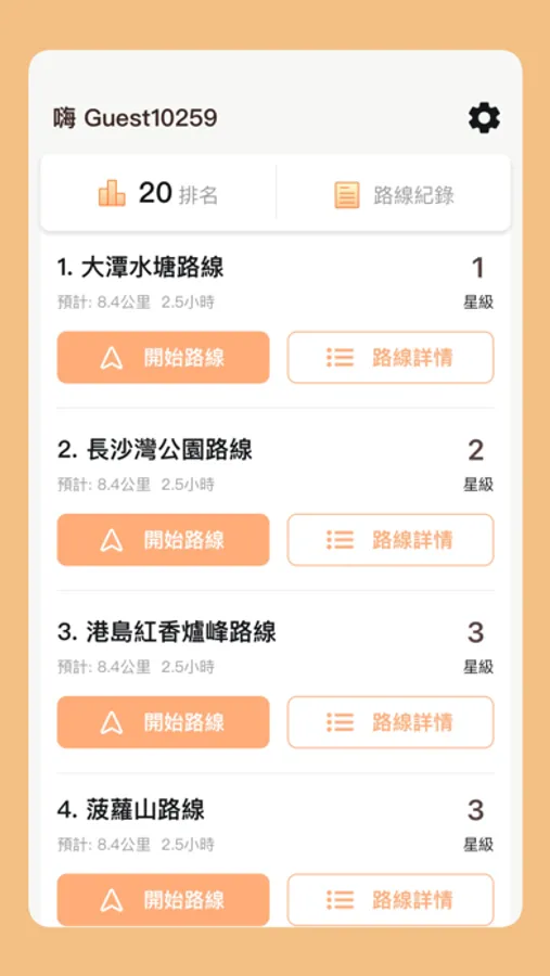 你可通過路線難度和評估需時而選擇任何路線進行挑戰,當完成後你會得到相等的積分獎勵。