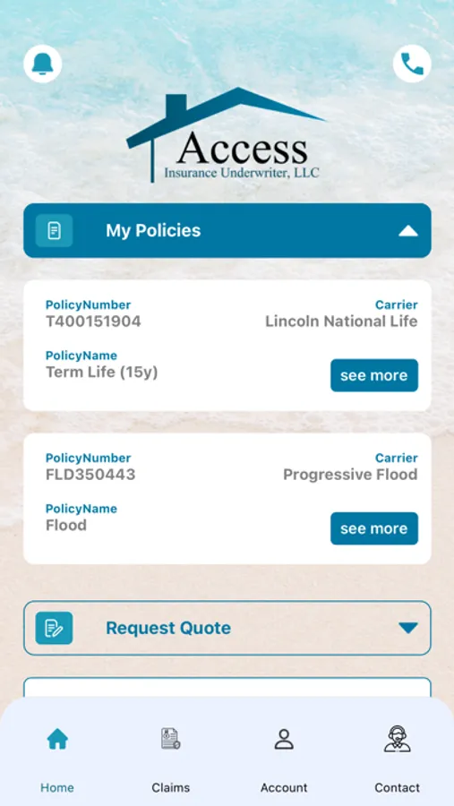 AccessInsurance app is used for Insurance policies. Firstly user login into this app when the user login opens the Home screen. The home screen contains two buttons one button is used to get all policies and another button is used to request quotes. A camera is used in this app to upload the profile picture and a Document picker is also used in this app to upload the PDF and image for policy details. The user can delete the account permanently functionality also in this app.