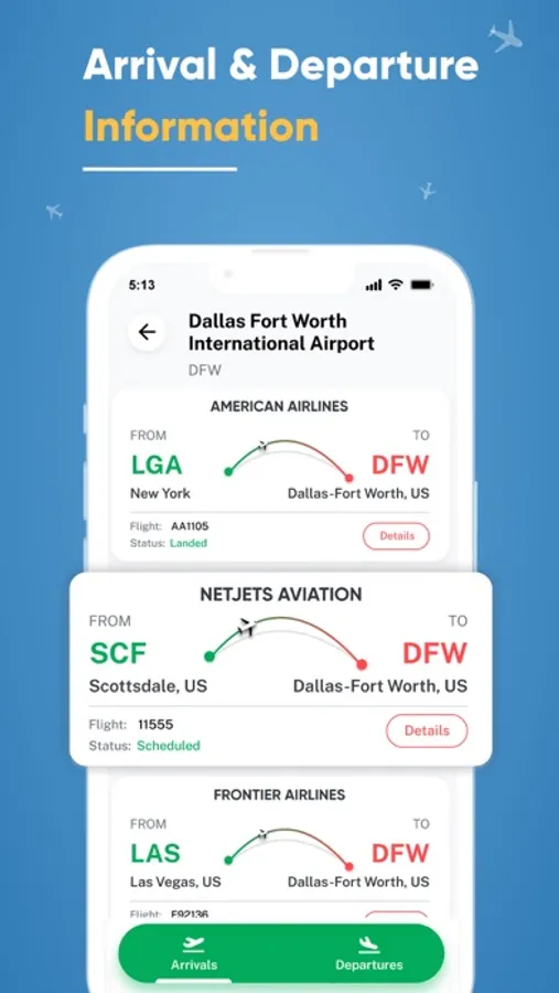 • Airport flights status app to get flight delays.