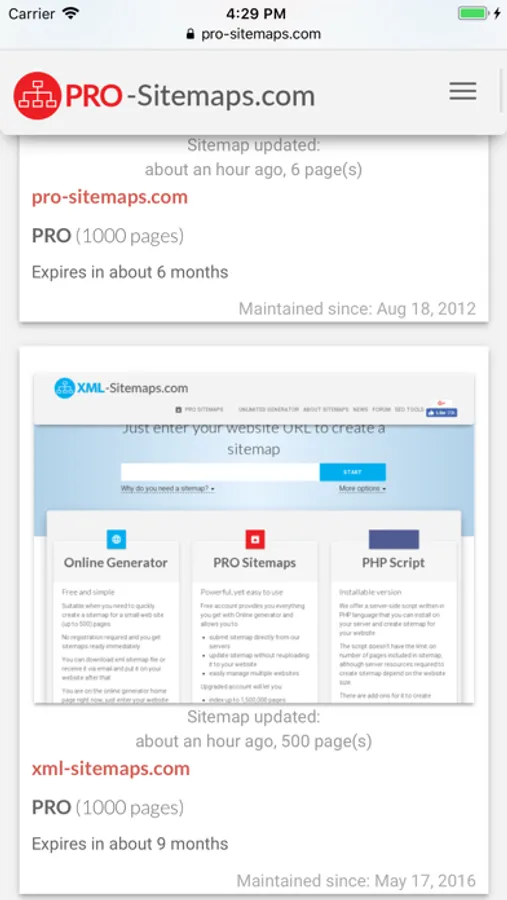 We've been providing a free online sitemap generator service since year 2005 and created millions of sitemaps for websites all over the world.
