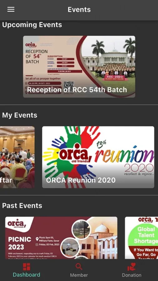 - Event Organization: Plan and participate in ORCA events. From get-togethers to official gatherings, our event planning feature ensures seamless coordination and communication.