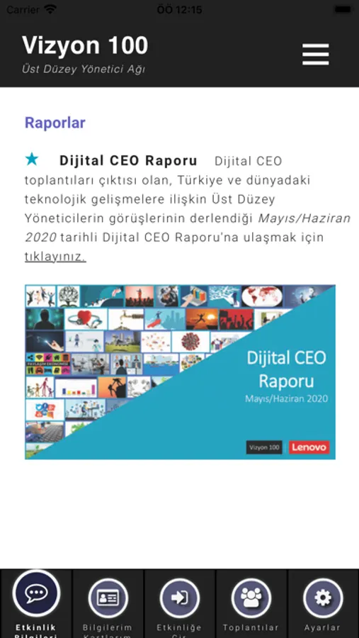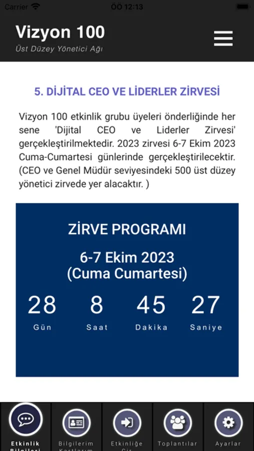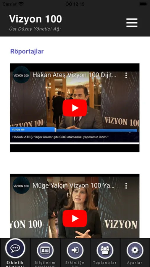 Vizyon 100 platformunun etkinlik ve iletişim uygulamasıdır. Kullancılar uygulama ile etkinlikleri takip edebilir, diğer kullanıcılarla bilgilerini paylaşabilir, toplantı ayarlayabilirler.