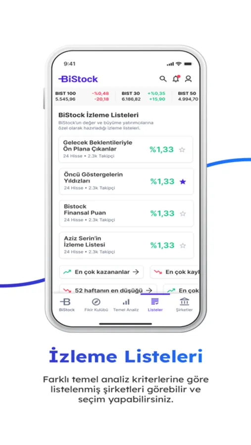In the Watch Lists, the new generation financial literacy module of BiStock, you will be able to see at a glance the companies that are doing well, growing and creating value while growing.
