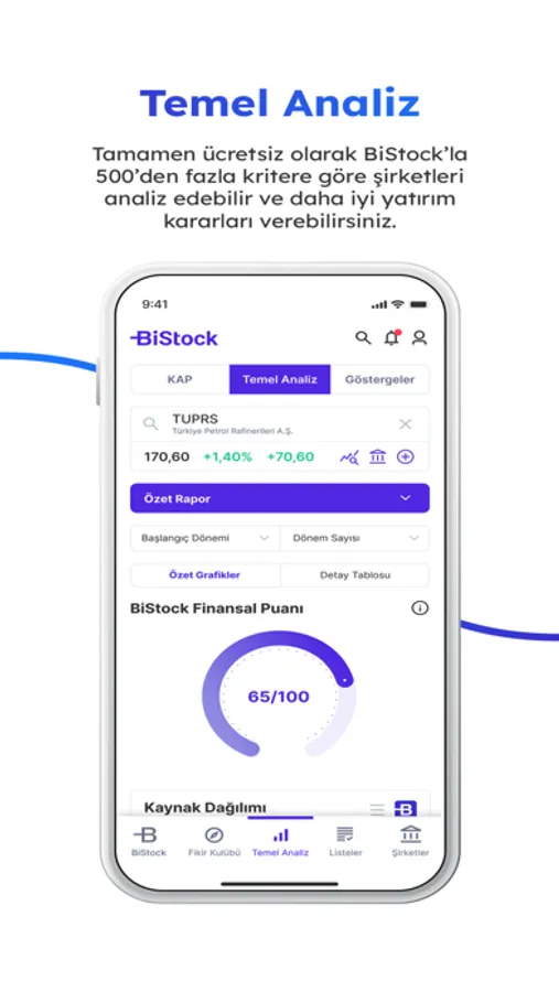 In BiStock, you will be able to analyze companies according to criteria that you cannot find even in paid competitors. In addition to balance sheet, income statement, cash flow statement, trading multiples, financial ratios, capital increase and dividend, foreign exchange analysis, you will be able to evaluate companies better with BiStock Financial Score.
