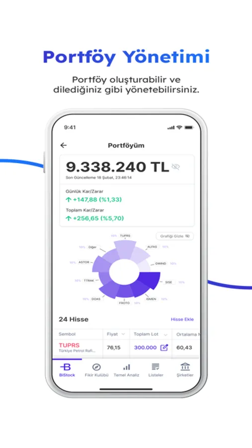 In BiStock, you will be able to easily track your portfolio, see its distribution, and create your own watch lists.
