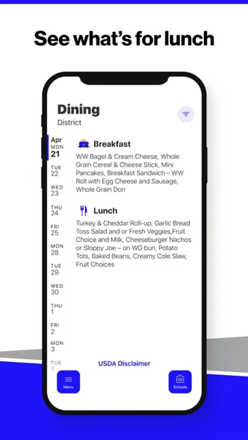 Within the dining section, you’ll find an easy to navigate, weekly menu, sorted by day and meal type.
