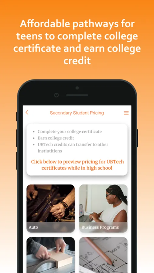 UBTech's app provides students with the cost breakdown for the courses associated with our certificate programs.