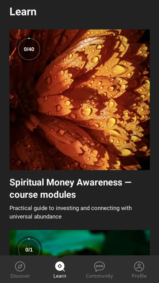 The Spiritual Money app by Ahkia Institute includes courses on money manifestation. It goes beyond law of attraction and using thought to attract wealth. The courses include meditation practices and practical financial investment tools, creating a complimentary course that merges metaphysical knowledge with "real world" physical knowledge on stocks, funds, and investment portfolio creation.