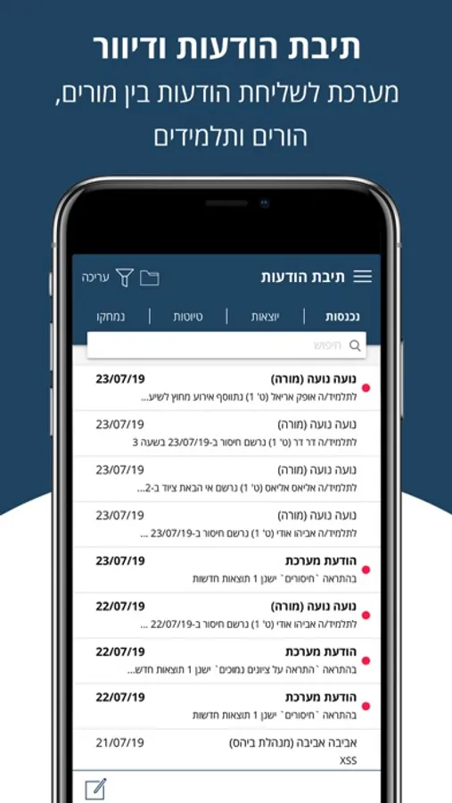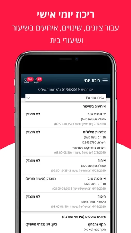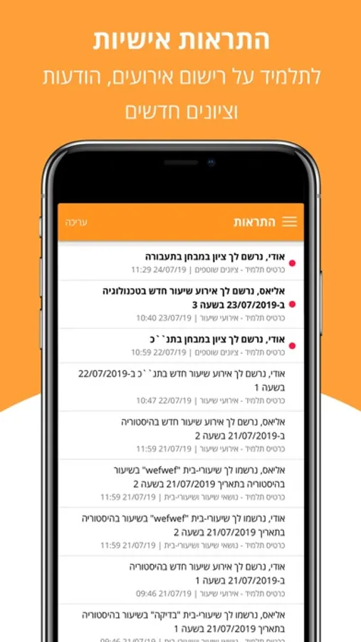 התראות על נתונים חדשים לתלמיד והתראות בדחיפה (Push Notifications) בזמן אמת.