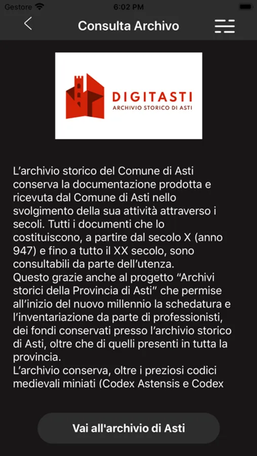 L’app permette di conoscere l’Archivio Storico e avere accesso a numerose funzioni che permettono di visitare la città con il supporto dei documenti che conserva.