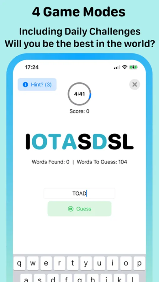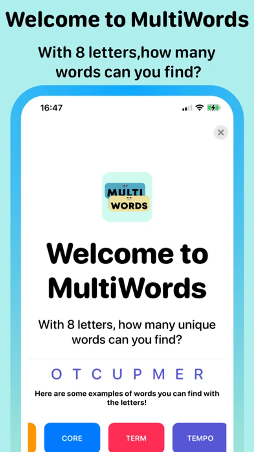 Challenge the world everyday with everyone getting the same letters! See if you are the best everyday or if you have the best MultiWords streak!