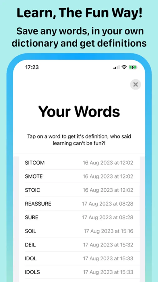 * Get definitions for new words you didn't know about and learn in a fun way!