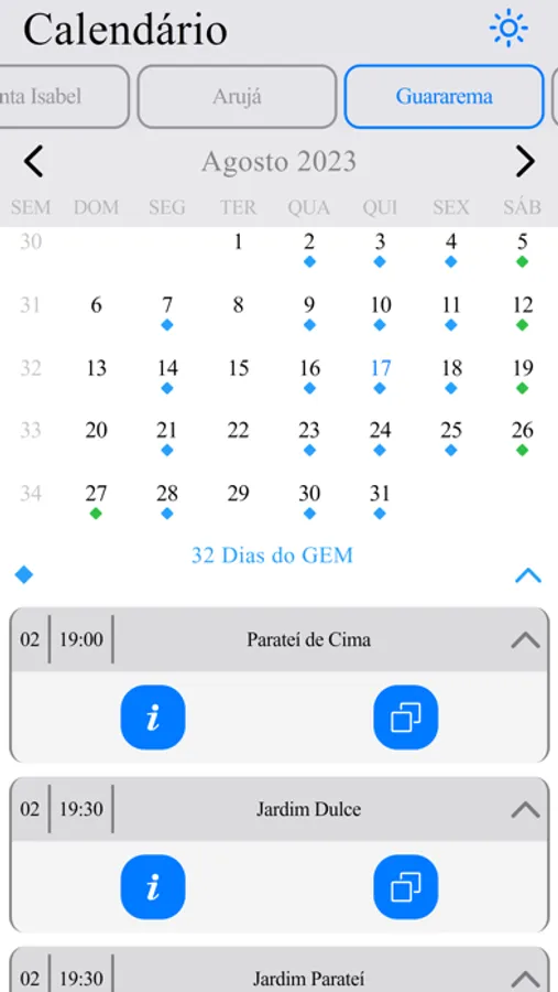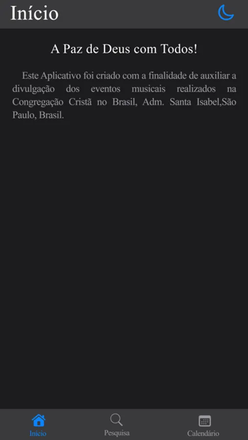 Very useful smartphone application for millions of musicians of world, to know where the musical events of the Christian Congregation in Brazil,Santa Isabel Administration (SAGI), São Paulo, SP, Brazil are being held.