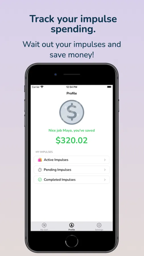 - Track your impulse spending and savings in a beautiful and interactive graph.
